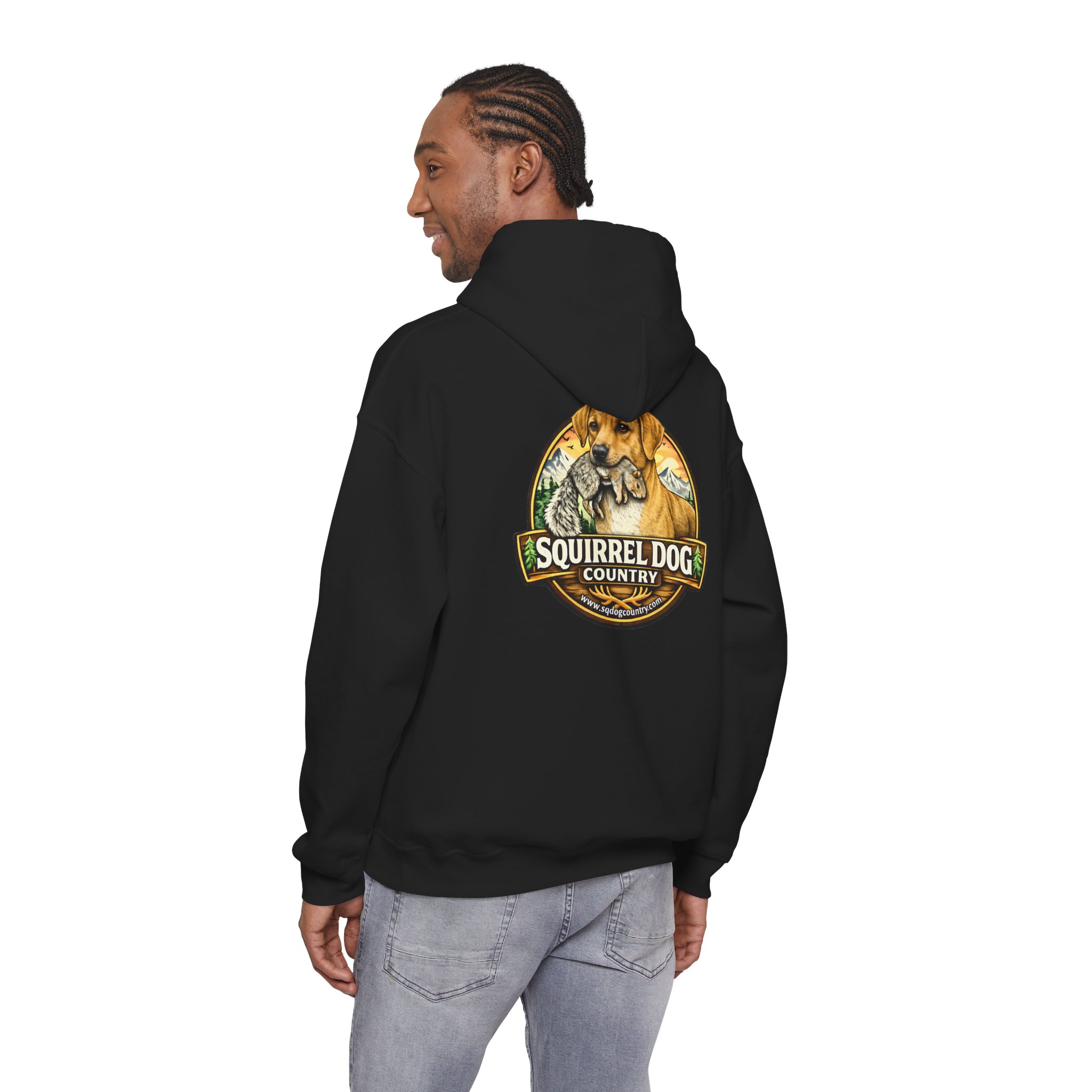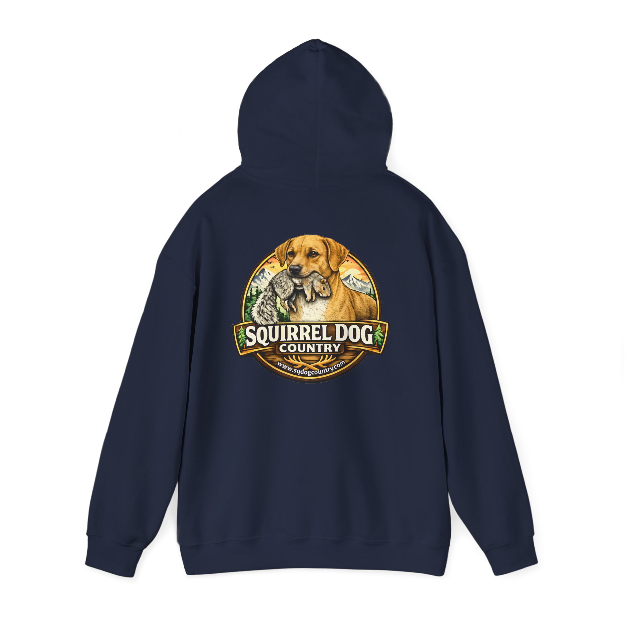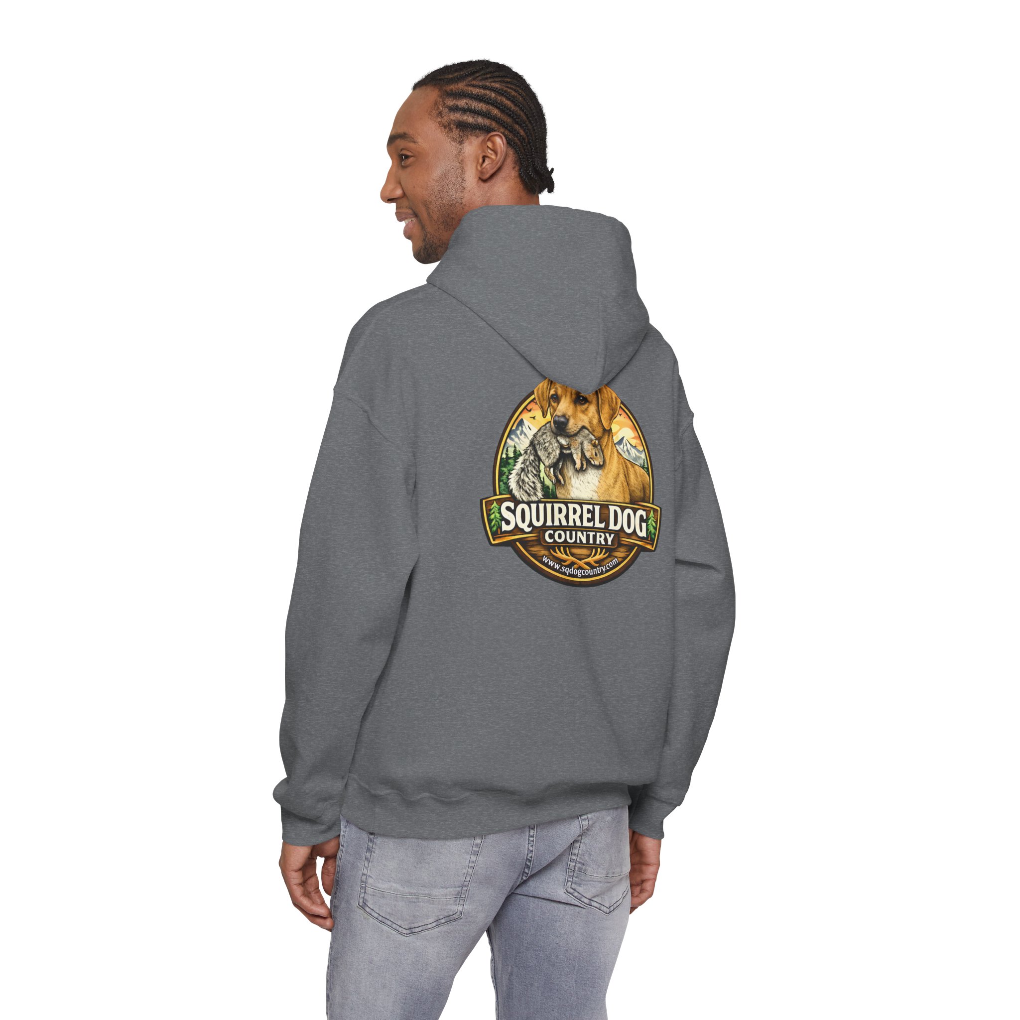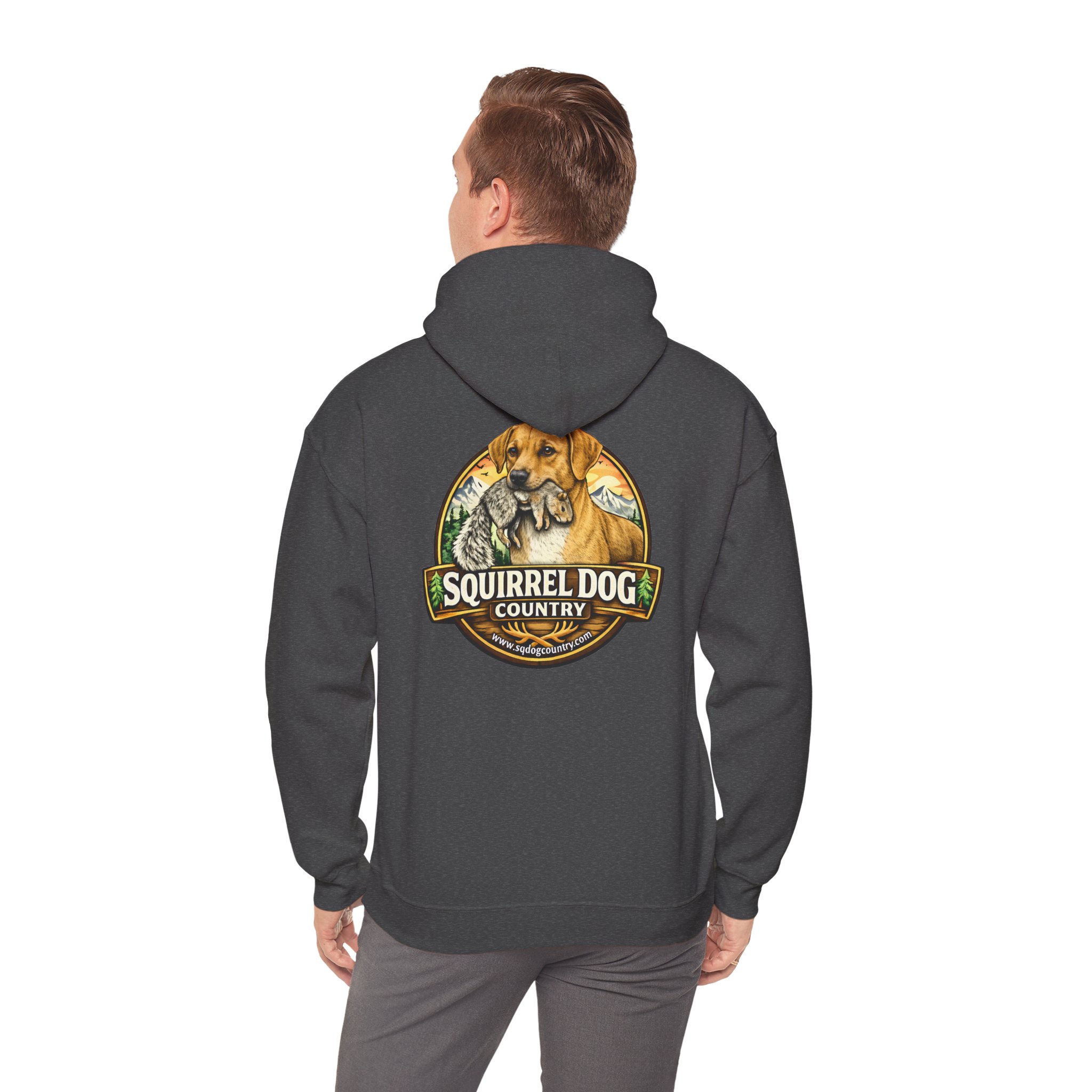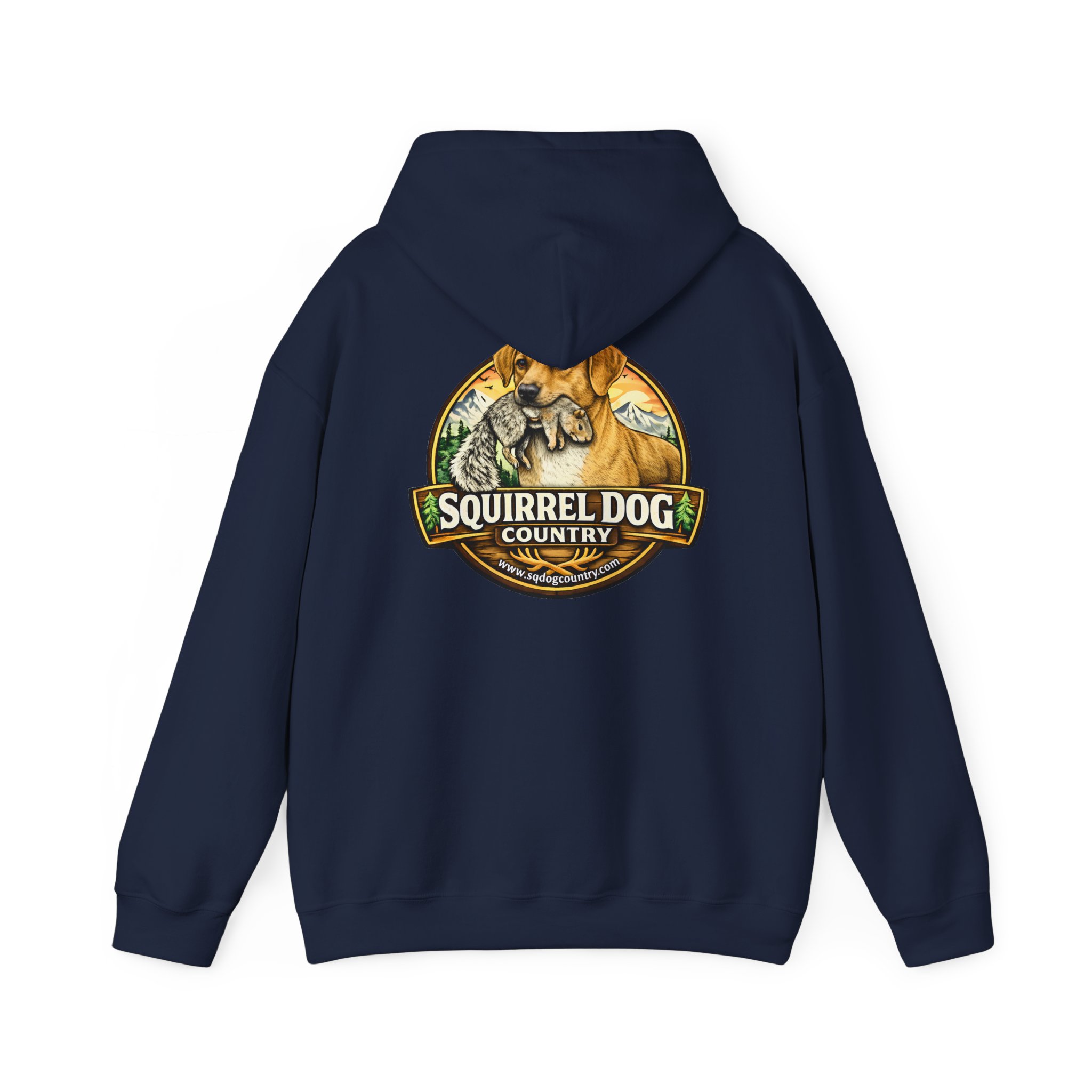 A cozy, midweight hooded sweatshirt made for people who live for woodland weekends and slow mornings with a loyal pup at their side. The soft 50/50 cotton–poly blend holds rich prints and resists shrinking, while the double-lined hood and color-matched drawcord add durable, thoughtful details. A roomy kangaroo pocket keeps hands warm between hikes, and the classic fit sits comfortably over layers. The back sports a rustic, outdoorsy emblem featuring a cheerful dog and forest motif — a quiet nod to country trails, squirrel-chasing afternoons, and campfire stories. Wear it on chilly mornings, at trailheads, or when you just want to bring a little wilderness into your everyday rhythm.