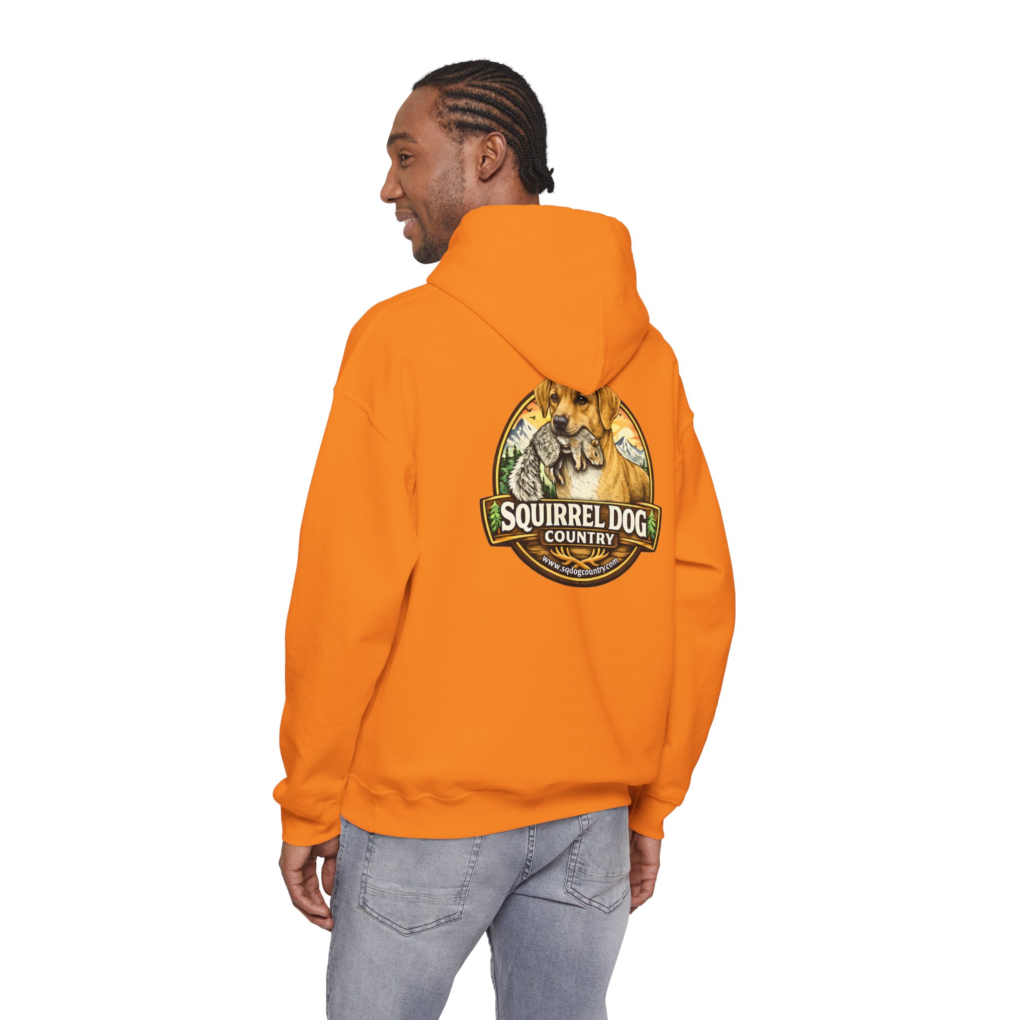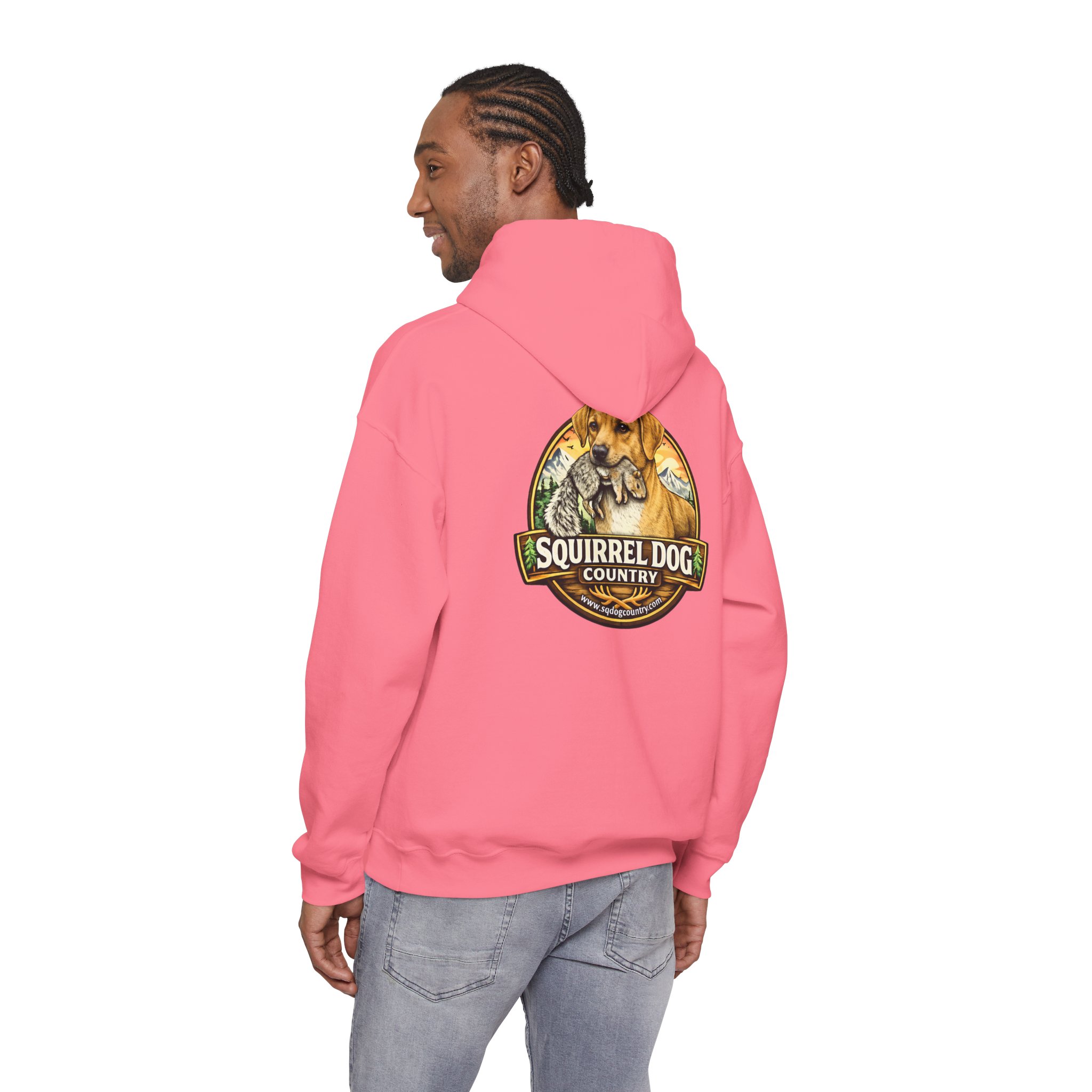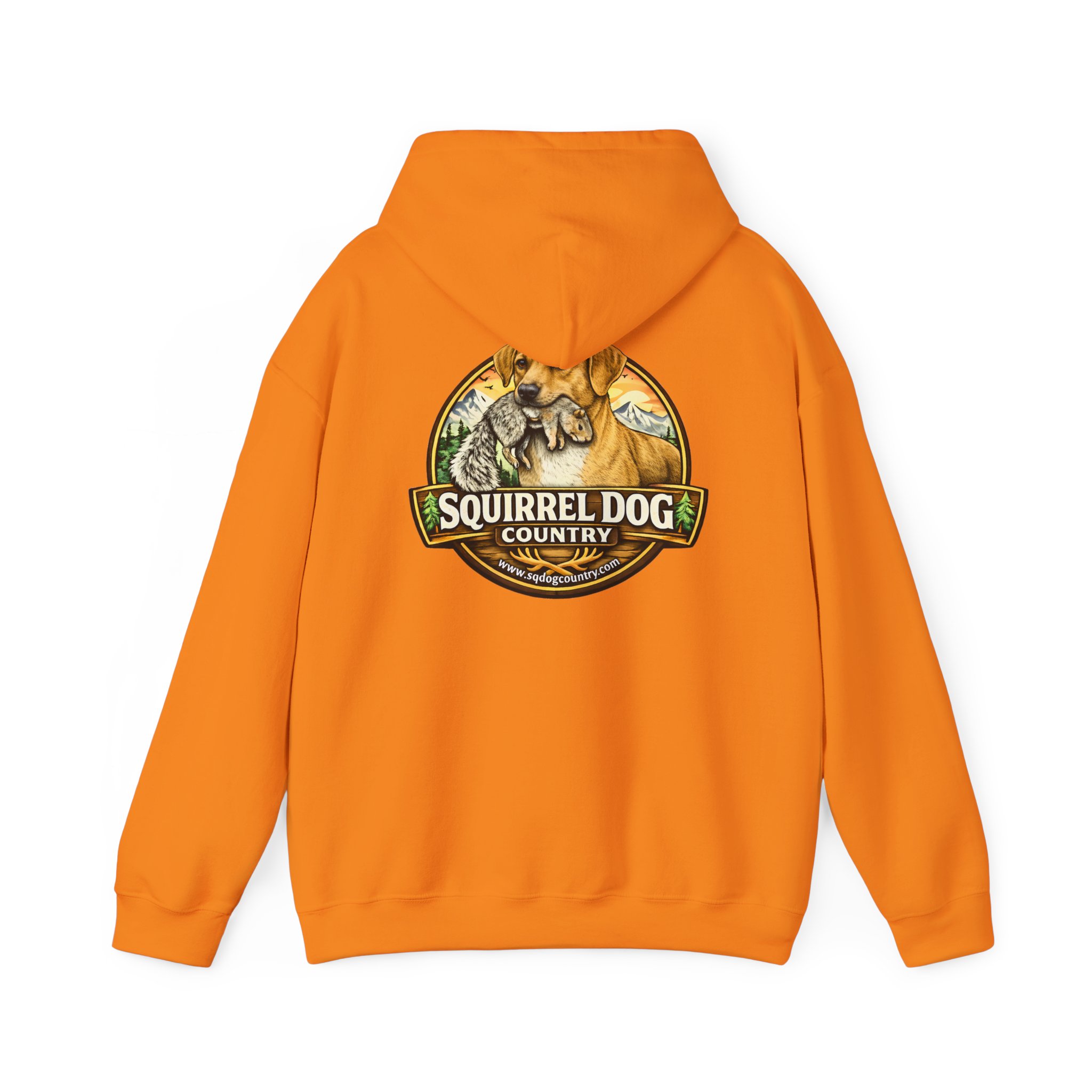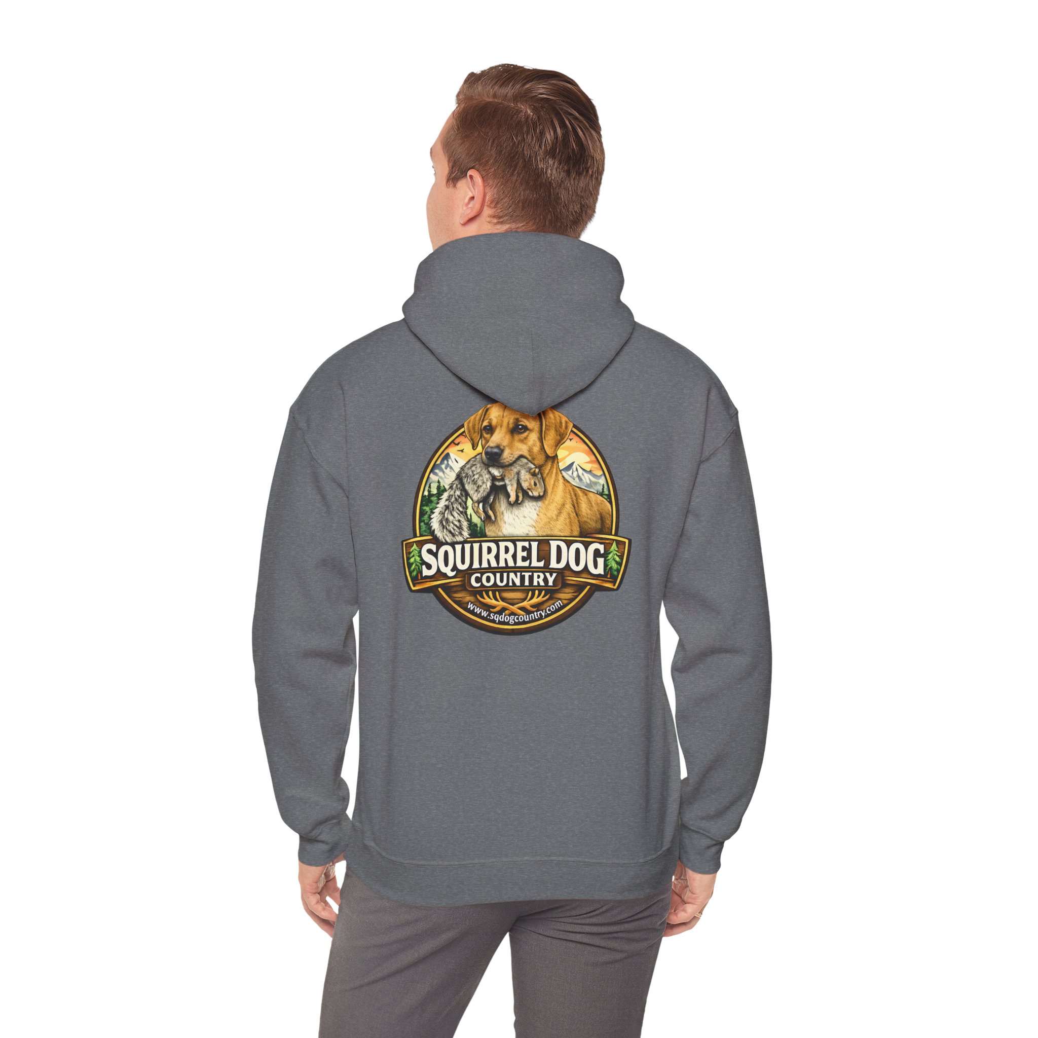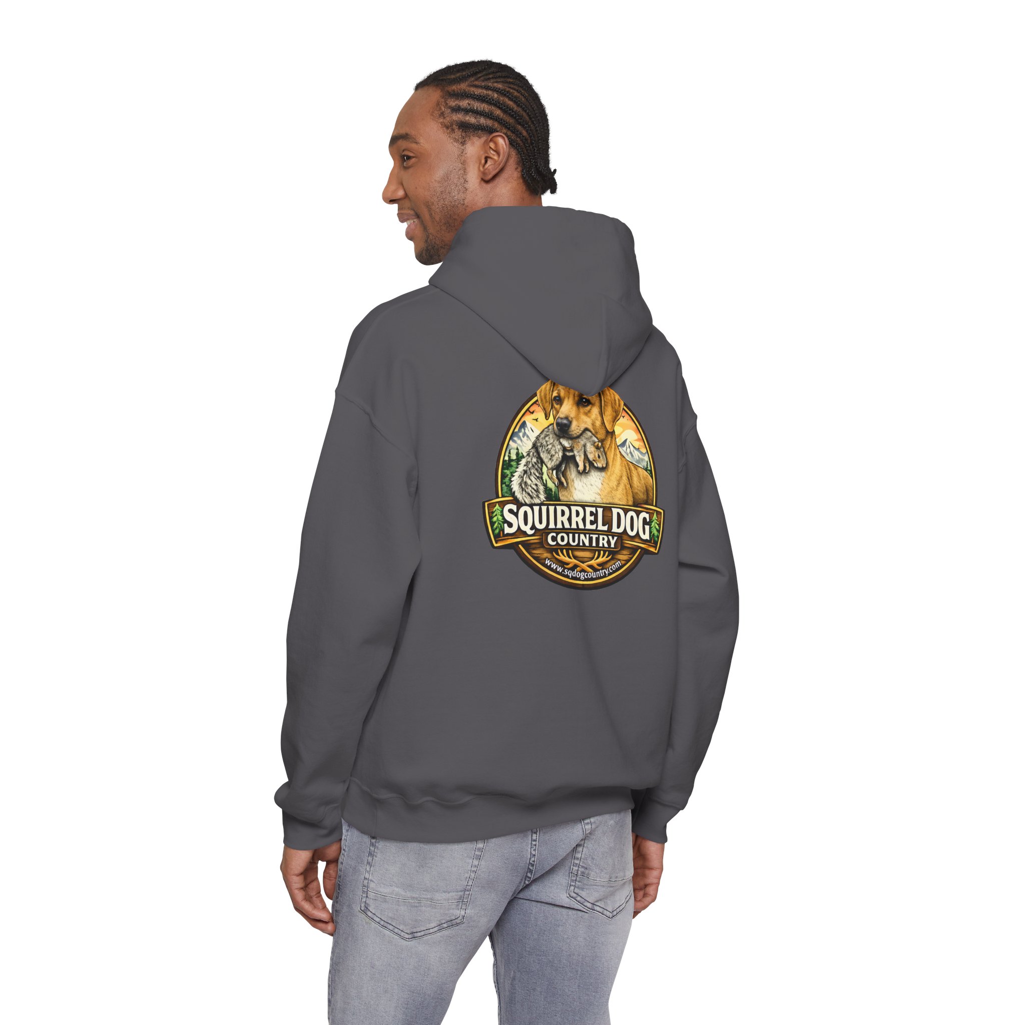 A cozy, midweight hooded sweatshirt made for people who live for woodland weekends and slow mornings with a loyal pup at their side. The soft 50/50 cotton–poly blend holds rich prints and resists shrinking, while the double-lined hood and color-matched drawcord add durable, thoughtful details. A roomy kangaroo pocket keeps hands warm between hikes, and the classic fit sits comfortably over layers. The back sports a rustic, outdoorsy emblem featuring a cheerful dog and forest motif — a quiet nod to country trails, squirrel-chasing afternoons, and campfire stories. Wear it on chilly mornings, at trailheads, or when you just want to bring a little wilderness into your everyday rhythm.