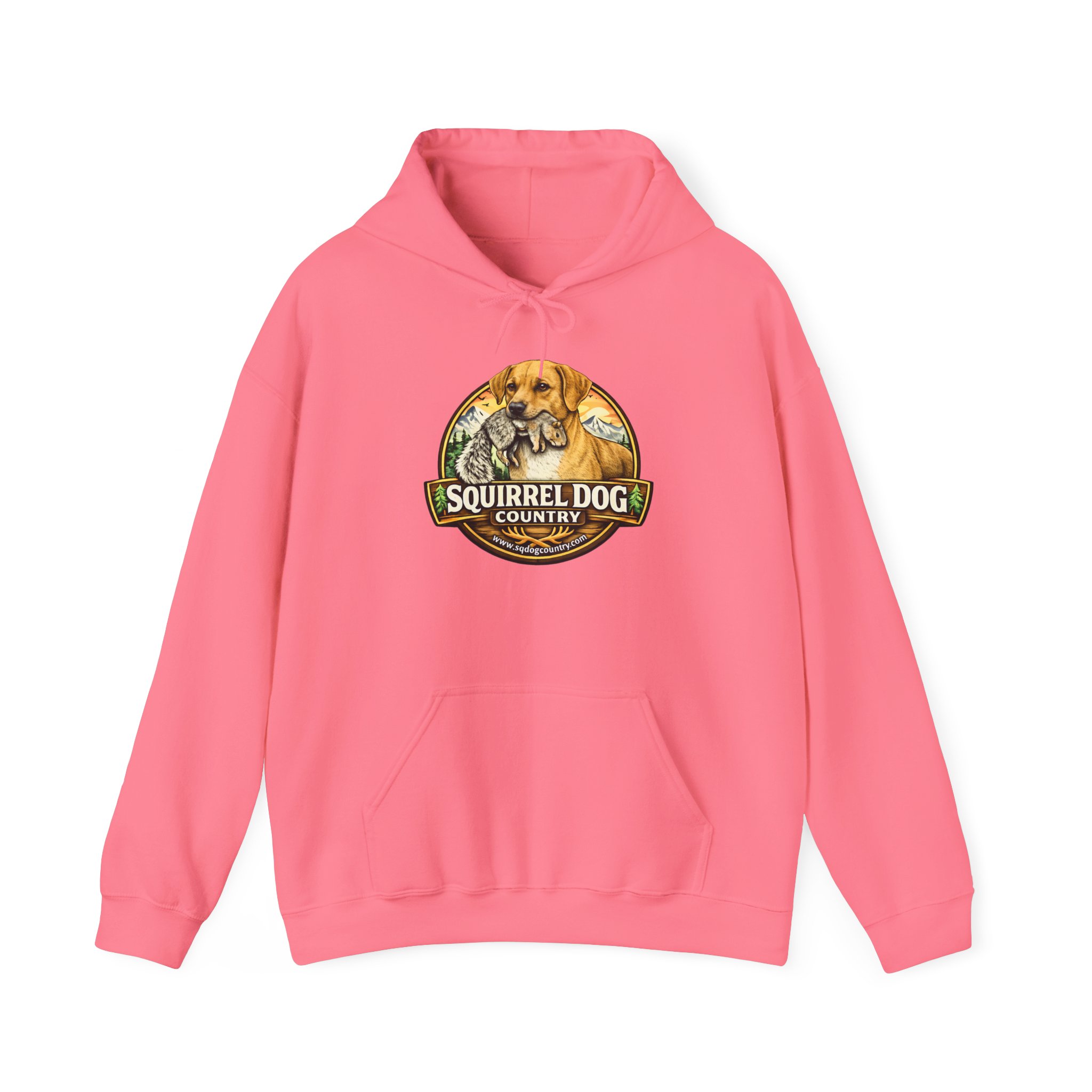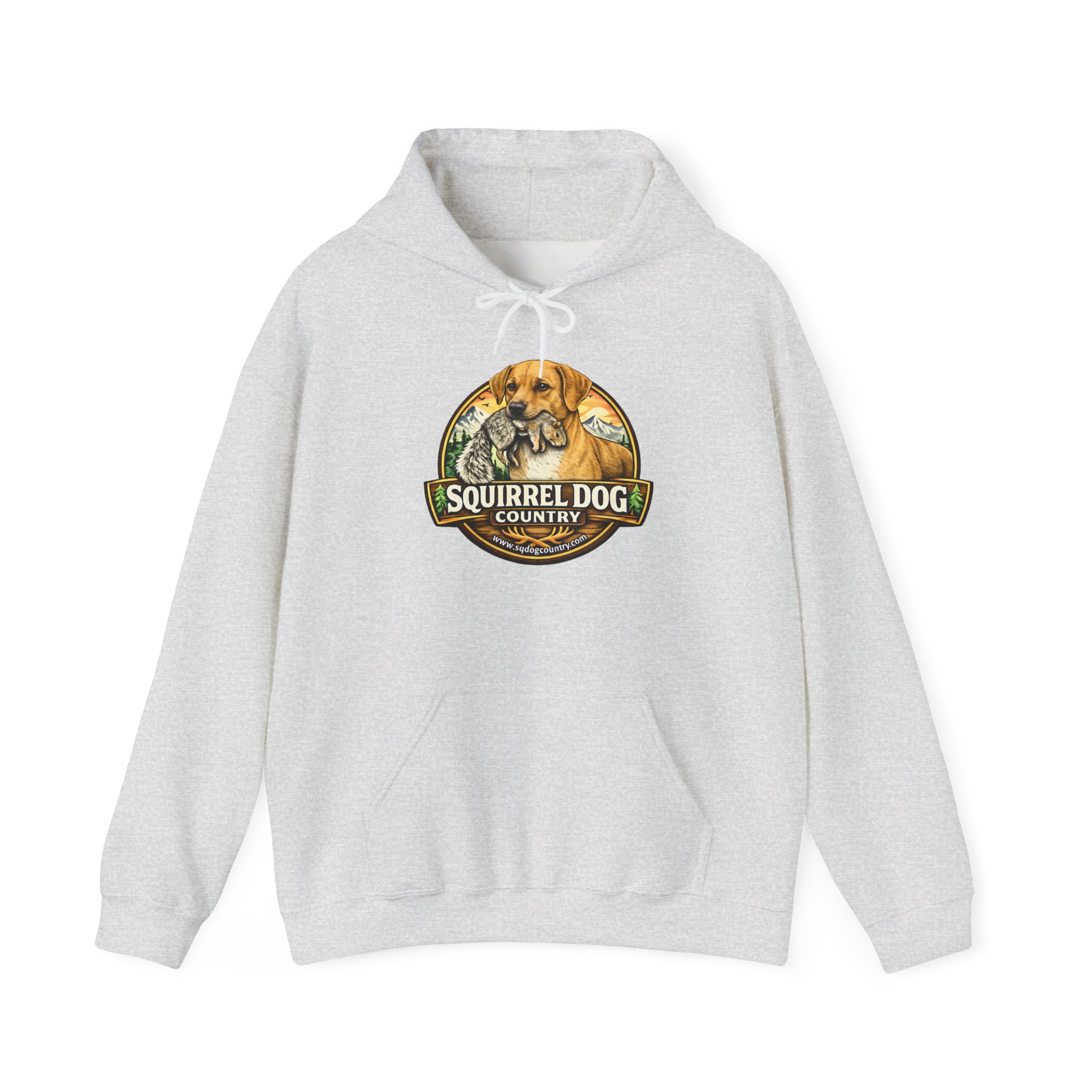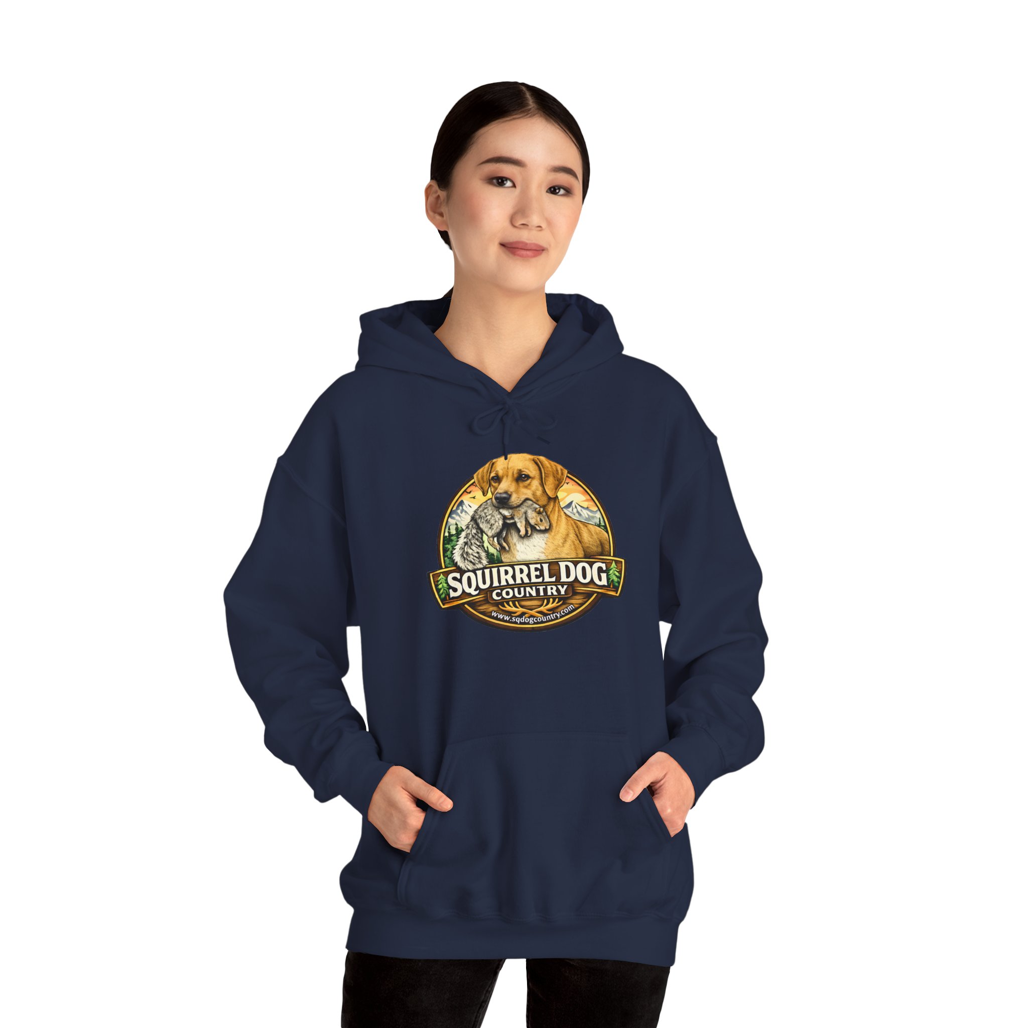 A cozy, lived-in hoodie made for mornings in the woods and slow afternoons on the porch. The mid-weight cotton/poly blend holds warmth without feeling bulky. A bold, vintage-inspired Squirrel Dog Country emblem sits on the chest — weathered tones and hand-illustrated details that nod to hunting dogs, backyard wildlife, and those who love tracking the small moments outdoors. The double-lined hood and color-matched drawcord keep the look clean. Toss it on over a tee after a brisk walk, wear it while checking trail cameras, or keep it by the door for last-minute errands. It feels like a familiar companion: sturdy, comfortable, and quietly proud of its outdoorsy heritage.