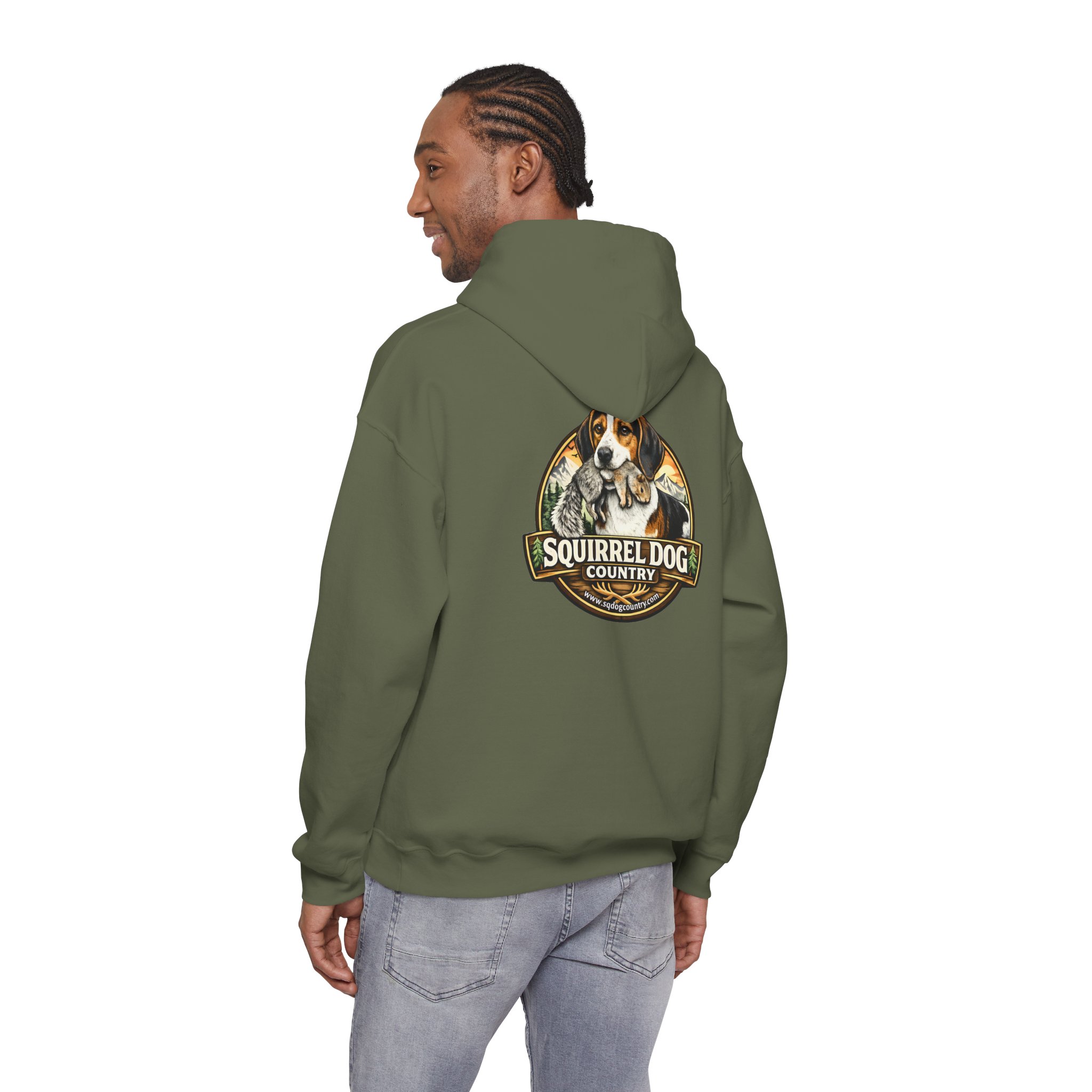 A cozy, midweight hooded sweatshirt made for people who live for woodland weekends and slow mornings with a loyal pup at their side. The soft 50/50 cotton–poly blend holds rich prints and resists shrinking, while the double-lined hood and color-matched drawcord add durable, thoughtful details. A roomy kangaroo pocket keeps hands warm between hikes, and the classic fit sits comfortably over layers. The back sports a rustic, outdoorsy emblem featuring a cheerful dog and forest motif — a quiet nod to country trails, squirrel-chasing afternoons, and campfire stories. Wear it on chilly mornings, at trailheads, or when you just want to bring a little wilderness into your everyday rhythm.