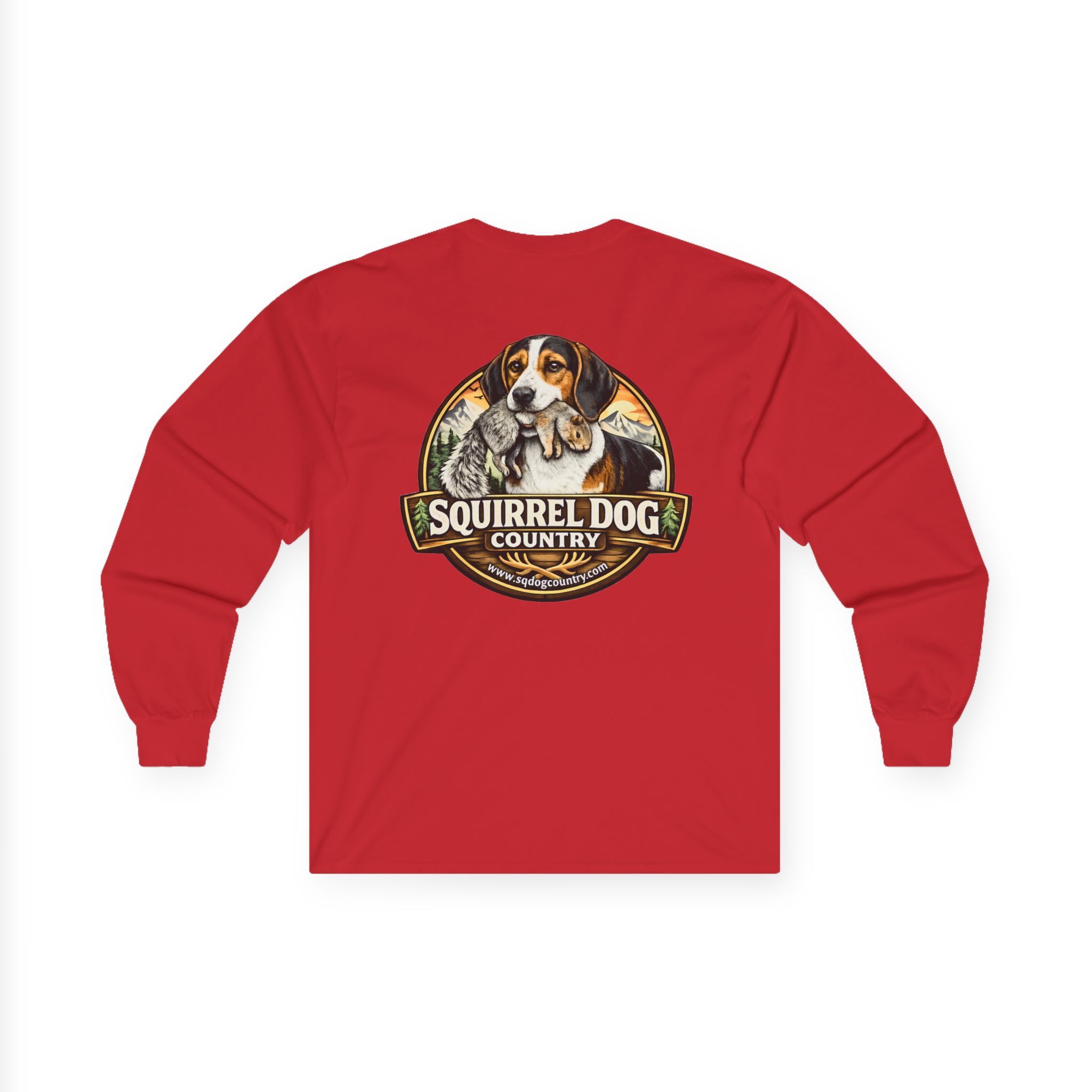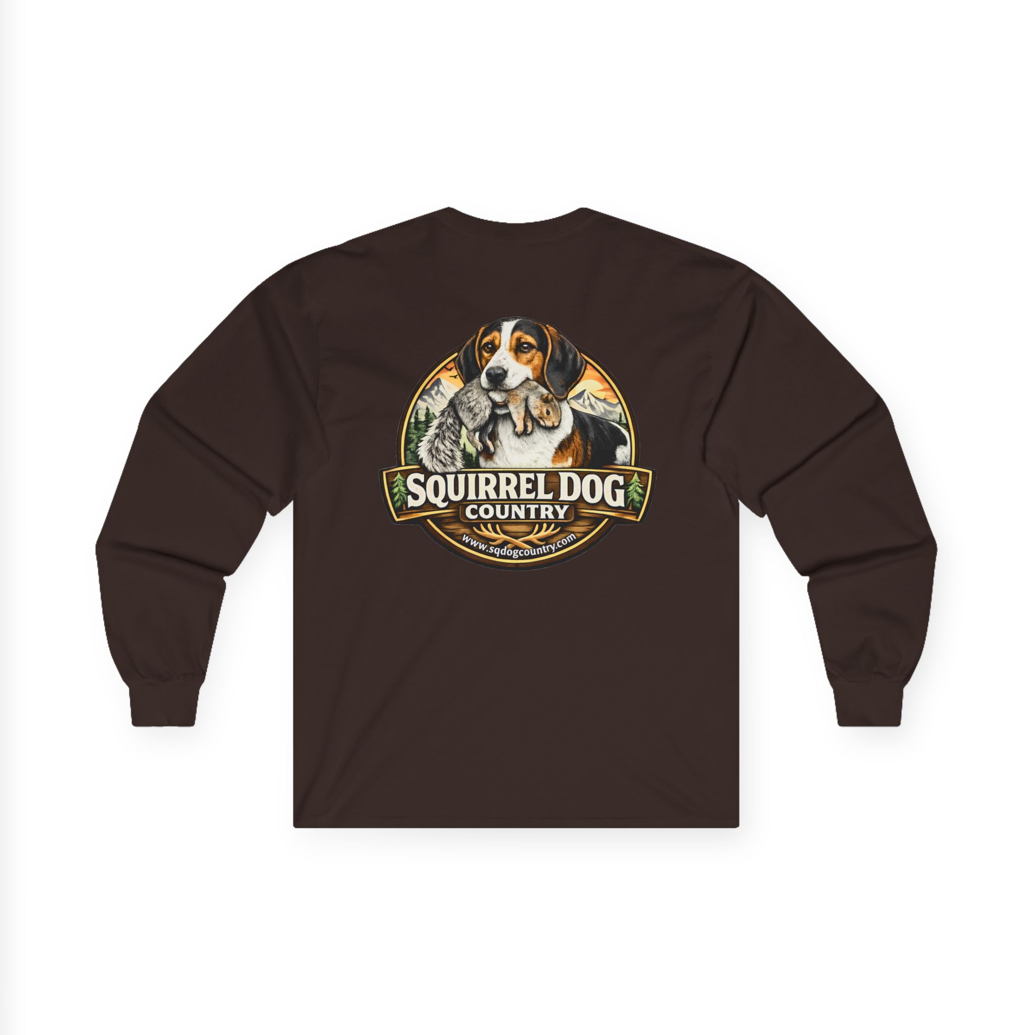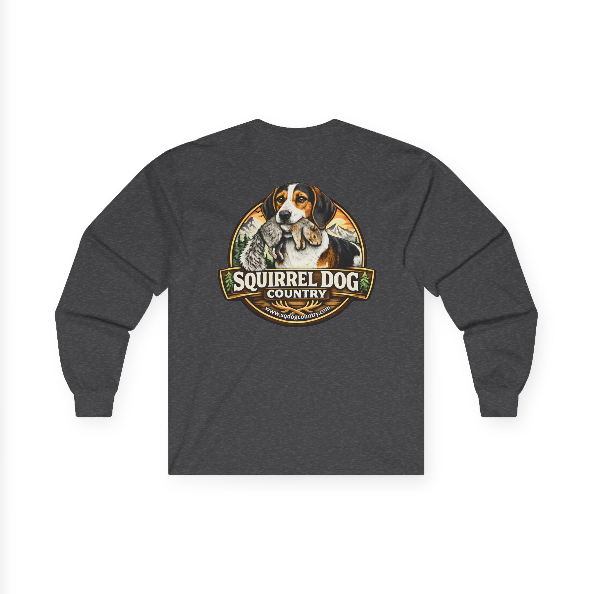 This long-sleeve tee brings a worn-in, country-living comfort to slow mornings and outdoor afternoons. The thicker, vintage-feel cotton drapes like an old favorite while the printed back graphic — a cheerful hound and woodland scene framed by “Squirrel Dog Country” — adds a bit of porch-side personality. Wear it after sunrise squirrel hunts, on dog-walking loops through leaf-strewn fields, or curled up with boots by the woodstove. The tubular knit and shoulder tape keep the shape steady, and the ribbed collar and cuffs hold up wash after wash. Sized with a classic cut that runs slightly small, it layers easily under a vest or over a flannel for cool-weather days that demand both function and hometown style.